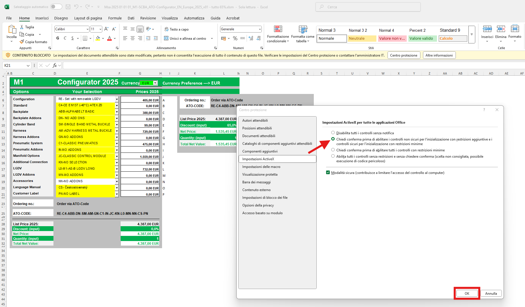 Excel, quindi aprire nuovamente il file configuratore. Ora i controlli ActiveX